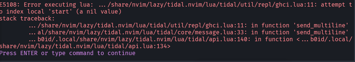 Works! There’s some more I’m having trouble with right now on trying this out. Some stuff might be setup specific (I’m fairly new to tidal, not new to nvim).